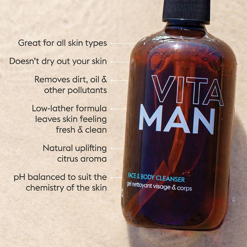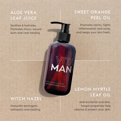 Ready to unlock your inner Chris Hemsworth? I’ve packed our VITAMAN Face & Body Cleanser with nourishing ingredients like white tea leaf, witch hazel, and a refreshing hint of sweet orange and lemon myrtle. It’s all about giving you clean, moisturised skin that looks and feels its absolute best.