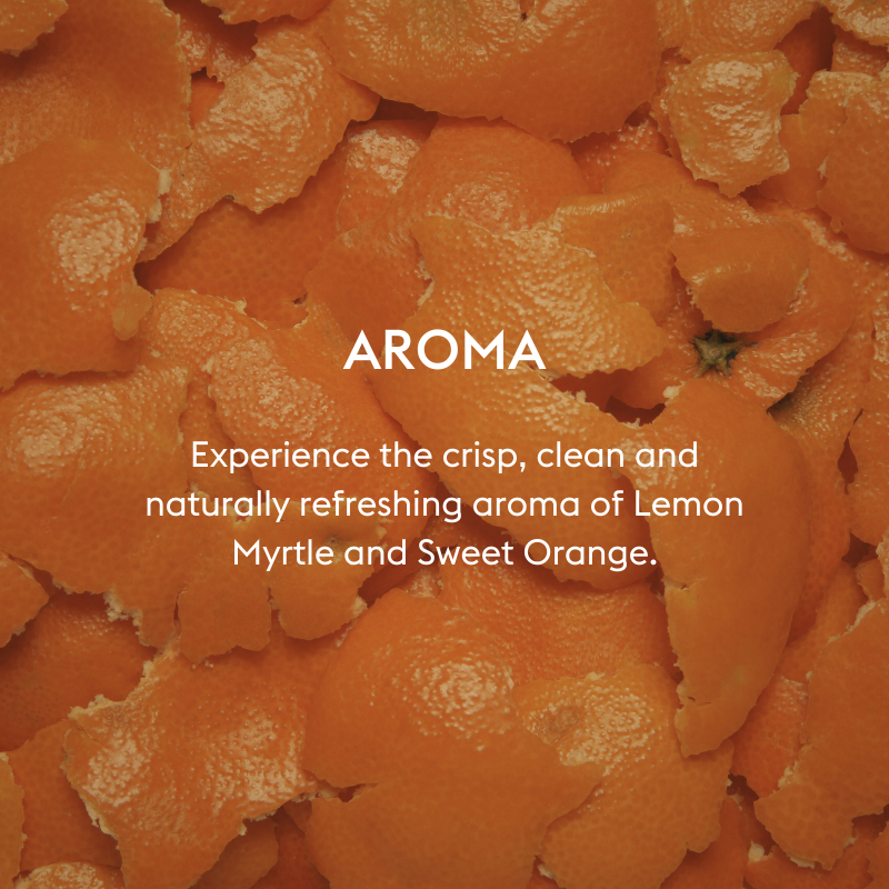 You’ll love the natural, refreshing scent of Lemon Myrtle and Sweet Orange Peel.