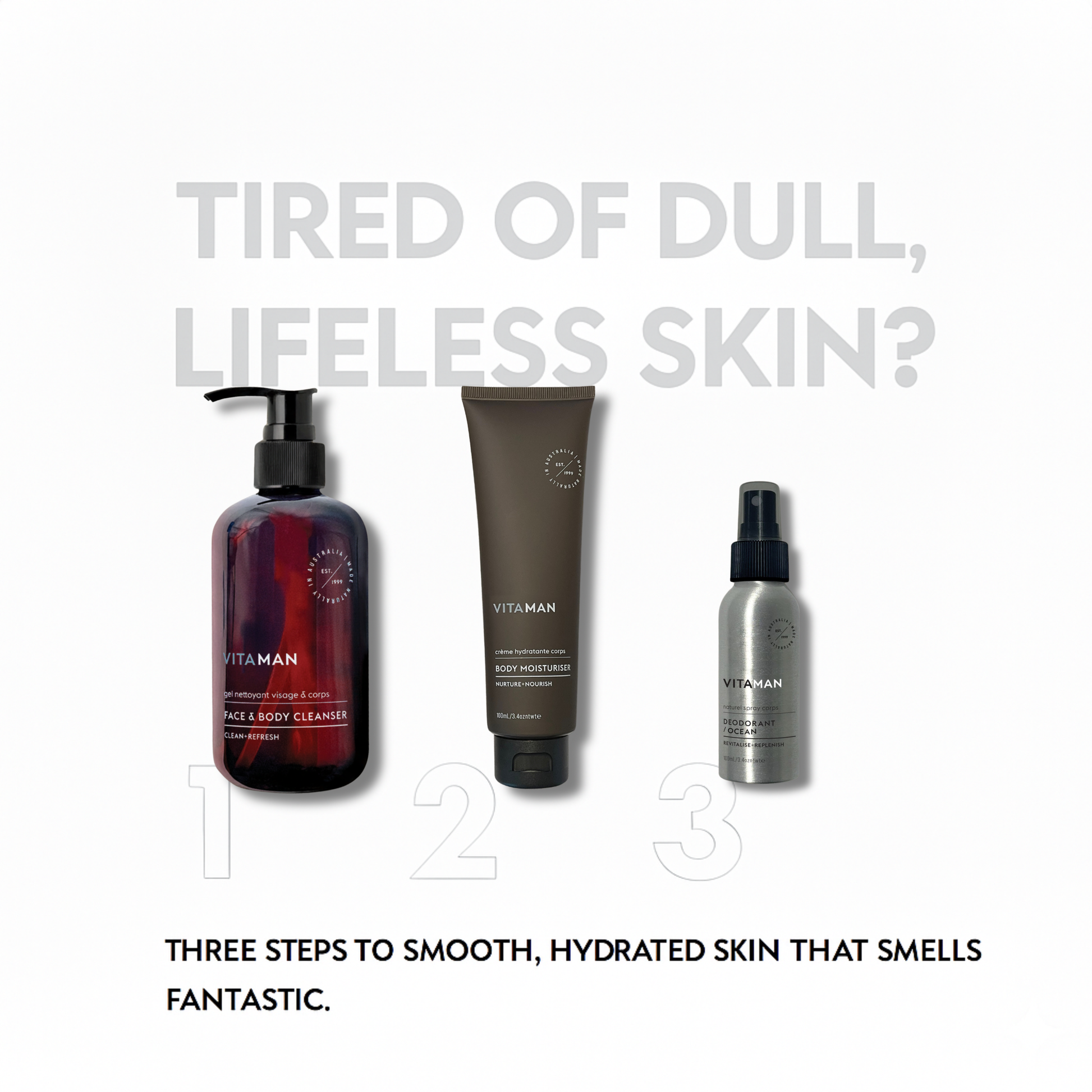 This unique blend of expertise and enthusiasm led to the birth of VITAMAN in December 1999, marking the dawn of Australia's first true pioneer in men’s grooming.