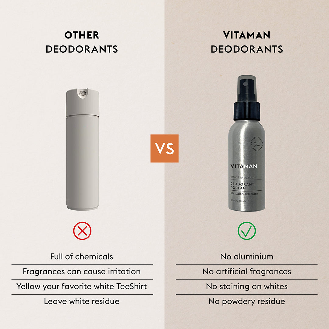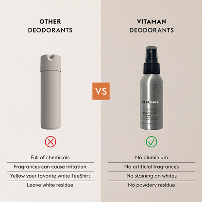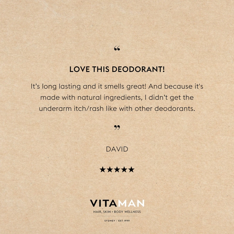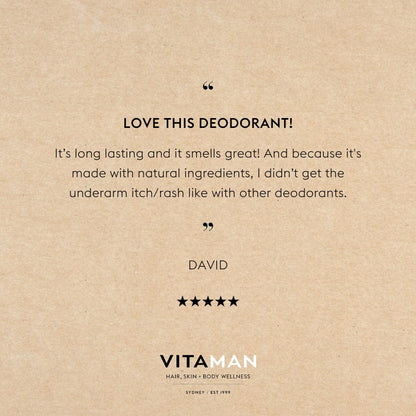 Our GQ award-winning deodorant offers all-day protection with our masculine VITAMAN signature scent that evokes strength, passion, and warmth.