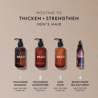 Guys, if you’re after thicker, fuller hair, our Hair Food is the secret weapon you need. It works from the roots up, nourishing your scalp with Saw Palmetto and Quandong Seed Oil to support natural, stronger, hair growth and volume. Use it consistently, and you’ll see a stronger, healthier mane in no time – no heavy buildup, just real results.